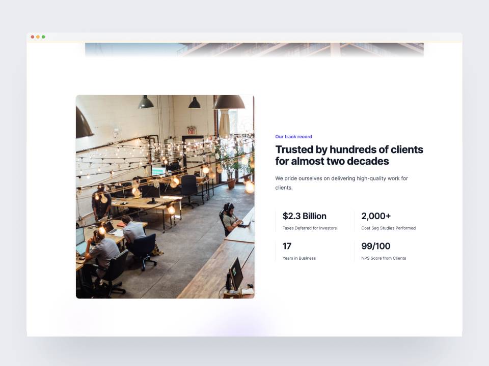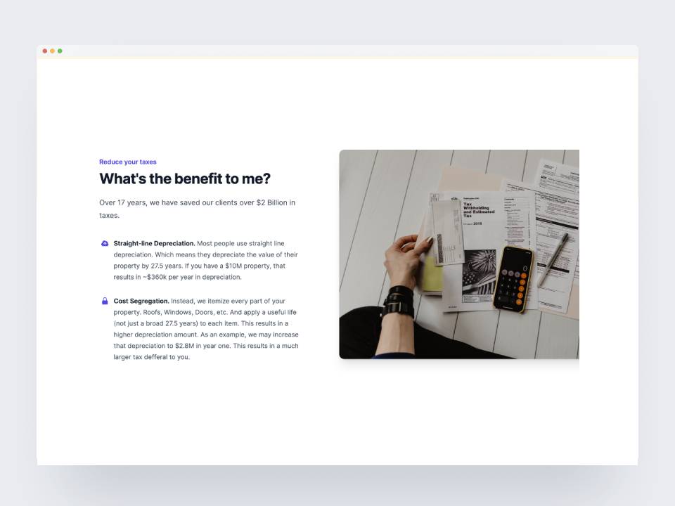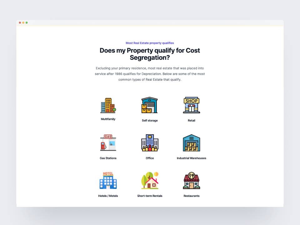 - A Cost Segregation Company that performs a cost segregation study on Real Estates to increase your depreciation and defer your taxes this year, all for one affordable price.